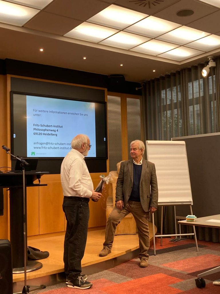 Nach 90 kurzweiligen und interessanten Minuten bedankte sich der Vorsitzende Karl – Josef Hahner bei Herrn Prof. Dr. Schubert für diese hervorragende Referat. Oft werden Zuhörer bei Vorträgen, die länger als 1 Stunde dauern, unruhig. Aber dieser hätte noch länger dauern können und niemandem wäre es langweilig geworden. „Sie haben es geschafft, dieses Thema mit Humor und Erfahrung zu behandeln und Anregungen zu geben, das eigene Lebensglück bewusst zu gestalten. Das hängt letztlich auch von den eigenen Ansprüchen und Erwartungen ab.
