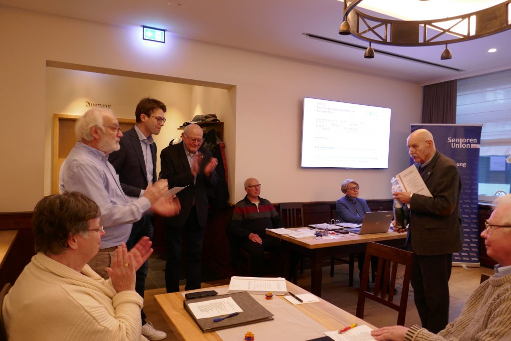 Zunächst wurde den seit der letzten Mitgliederversammlung verstorbenen Mitglieder in einer Schweigeminute gedacht. Danach schloss sich die Ehrung von Mitgliedern, die der Senioren Union länger als 20 Jahre die Treue halten mit einer Urkunde und einem kleinen Präsent an. Leider konnten nicht alle zu Ehrenden teilnehmen, sodass wir diese besuchen und die Urkunde und das Präsent übergeben werden. Die Ehrung wurde vom Landesvorsitzenden Kurt Wiegel, vom Mdl Sebastian Müller sowie vom Kreisvorsitzenden Karl – Josef Hahner vorgenommen.