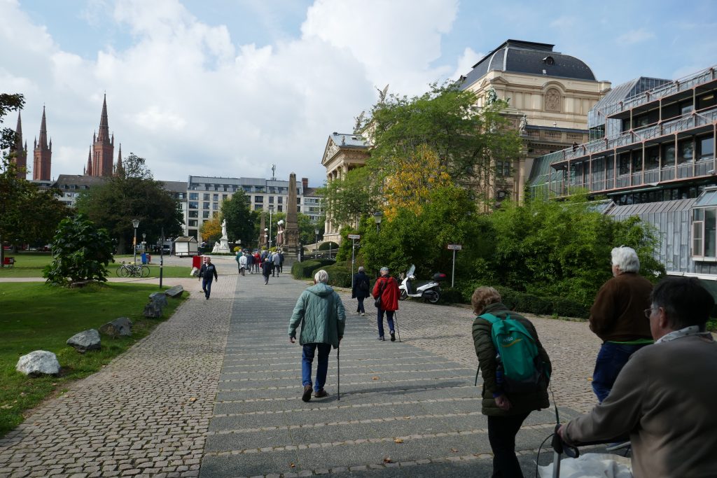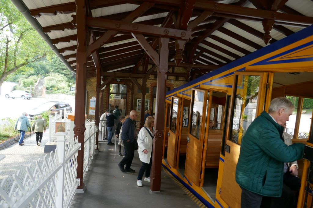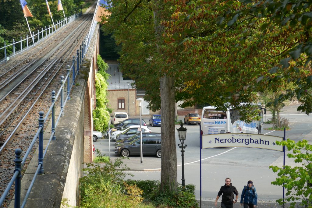 Um 8.30 Uhr startete der Bus am Parkplatz des Petersberger Waidesgrundstadion. Die Fahrt ging über die A66 nach Wiesbaden mit dem Ziel der Talstation der Nerobergbahn. Diese im Jahre 1888 errichtete Wasserlast- und Zahnstangen-Standseilbahn mit einer Länge von 483 m führt vom Nerotal bei einer mittleren Steigung von fast 20 % auf den Neroberg und überwindet dabei einen Höhenunterschied von 83 m. Bei einem Tempo von 7,8 km/h und einer Fahrzeit von rd. dreieinhalb Minuten erhält man neben einem tollen Blick auf die Stadt auch einen Einblick in die faszinierende Technik vergangener Zeiten.