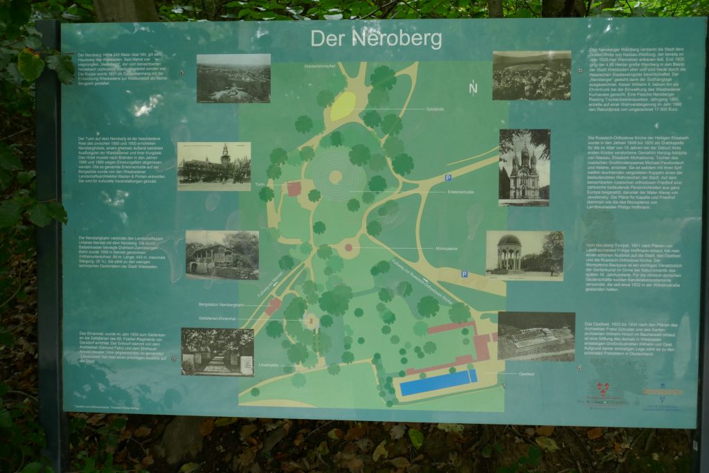 Noch heute bietet sich den Besuchern des Nerobergsd fast das gleiche Bild wie vor mehr als 100 Jahren. Vor einer traumhaften Kulisse steht der Nerobergtempel, unter dem sich auch das bergseitige Wasserreservoir der Bahn befindet. Man hat von oben einen herrlichen Weitblick über die Umgebung, den Rhein bis zu den Höhenzügen des Odenwaldes und Spessarts. Er ist der Hausberg der Wiesbadener. Auch die Russisch-Orthodoxe Kirche mit ihrer goldenen Kuppel ist eine Augenweide.