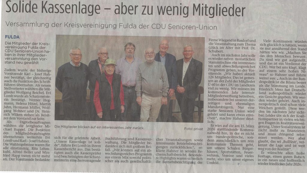 Die Fuldaer Zeitung hat in ihrer Ausgabe vom 3. Dezember 2025 über die Jahreshauptversammlung berichtet. In dieser fanden die alle zwei Jahre turnusmäßig stattfindenden Vorstandswahlen statt. Über die Zusammensetzung des neuen Vorstands siehe unter der Rubrik „Kreisvorstand“.
